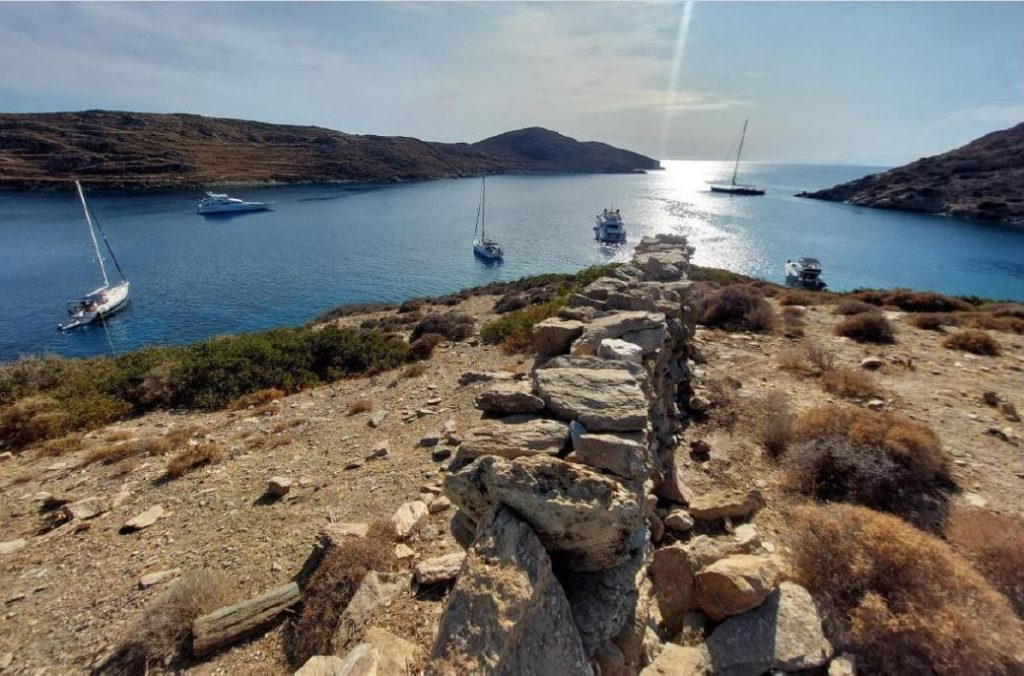 Amorgos, l’ile où a été tourné le Grand Bleu, film mythique de Luc Besson. Le fameux rafiot échoué et tout rouillé du film est dans une autre anse. On ne le verra pas. Nous croisons beaucoup de randonneurs français, adeptes des multiples sentiers. L’ile ne compte en effet qu’une seule route asphaltée. Sommes cul au quai avec quelques restaurants typiques, calmes.